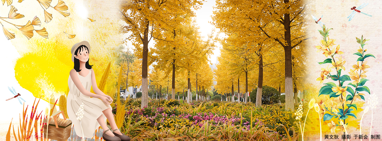 深秋银杏叶金黄,摇落风中着路旁。2019.11.07