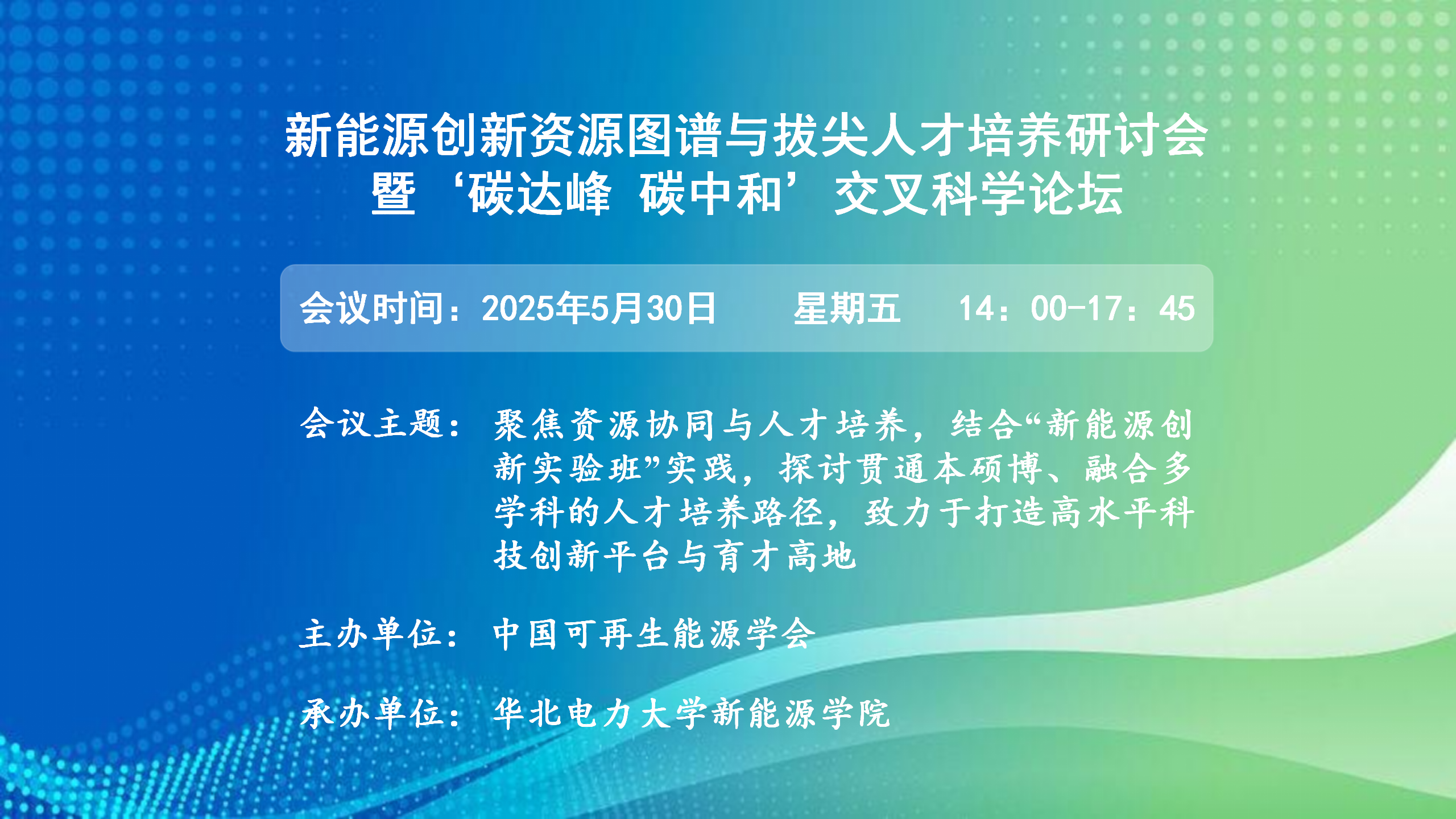 新能源创新资源图谱与拔尖人才培养研讨会“新能源创新资源图谱与拔尖人才培养研讨会暨‘碳达峰 碳中和’交叉科学论坛” 一、会议主题:聚焦资源协同与人才培养,结合“新能源创新实验班”实践,探讨贯通本硕博、融合多学科的人才培养路径,致力于打造高水平科技创新平台与育才高地 二、会议时间:2025年5月30日14:00~17:45 三、会议地点...主讲人:梁媛、张晓朝、倪达、褚景春、刘笑驰、肖平、孟庆波、禹习谦、王友清时间:2025-05-30 14:00地点:主楼D260 -
