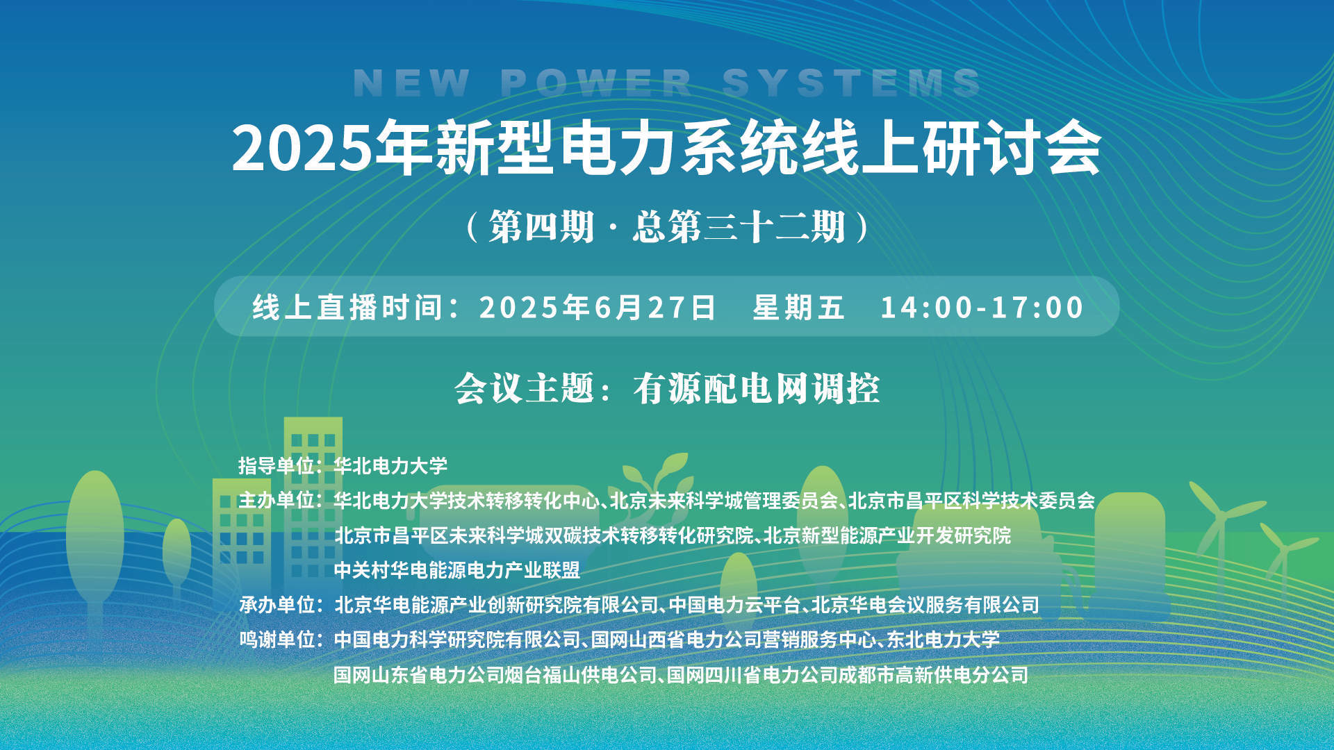 2025年新型电力系统线上研讨会(第四期·总第三十二期)一、讲座主题:有源配电网调控 二、讲座时间:2025年6月27日 星期五 14:00-17:00 三、讲座地点: 线上直播:https://t19c5.mk.xet.citv.cn/sl/4yQZvG(联系人郭欣欣17310578562) 四、主讲人信息: (一)主讲人:毛文博 主讲...主讲人:毛文博、肖春、贾焦心、李瑞峰、宇志远、魏榆扬时间:2025-06-27 14:00地点:线上讲座 -