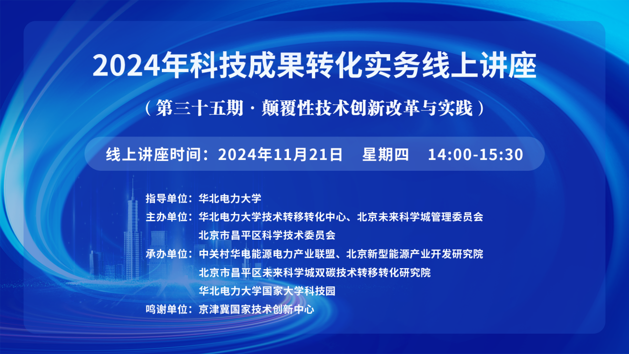 2024年科技成果转化实务线上讲座(第三十四期)【讲座主题】提升科技自主创新能力 推进科技成果应用转化 【讲座时间】11月14日 【讲座地点】https://wlwth.xetlk.com/sl/LhQ7e 联系人:李晓婉 13311276132 【主讲人】 孙世辉 中国电力建设集团有限公司科技与数字化部副主任 【主讲人简介】 ...主讲人:孙世辉时间:2024-11-14 14:00地点:线上讲座 -